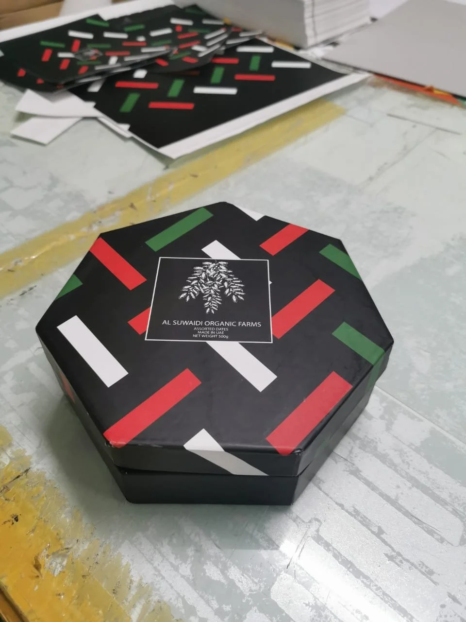 For this date box packaging, I created a design that not only celebrates the vibrant spirit of the UAE but also addresses a practical concern: minimizing food waste.